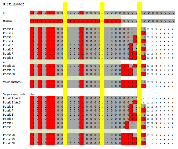 (Subnetting 172.16.0.0/20 na 30 podsítí.) |